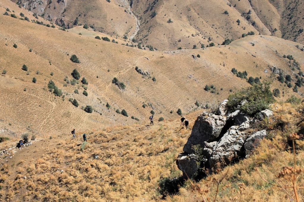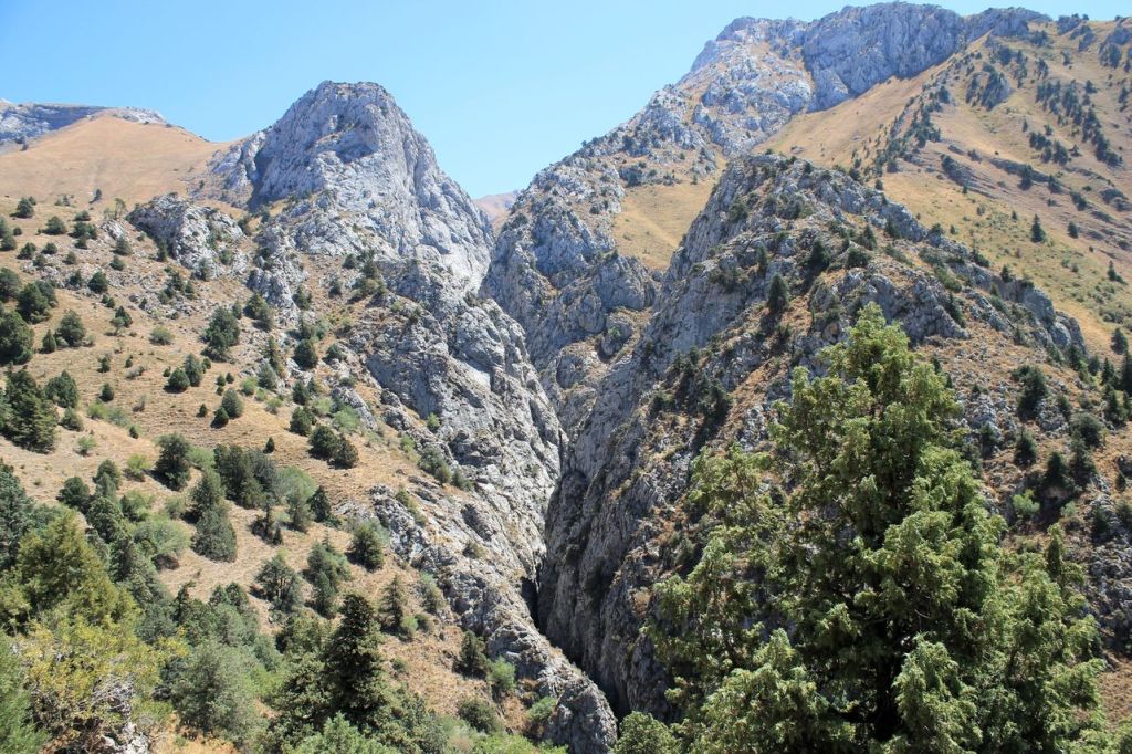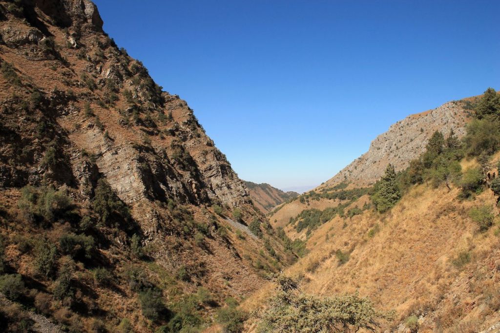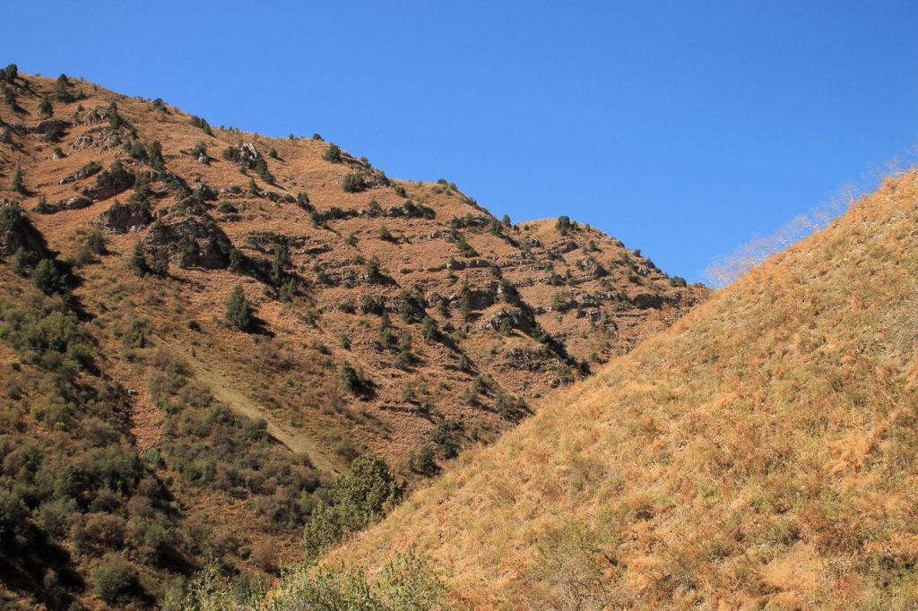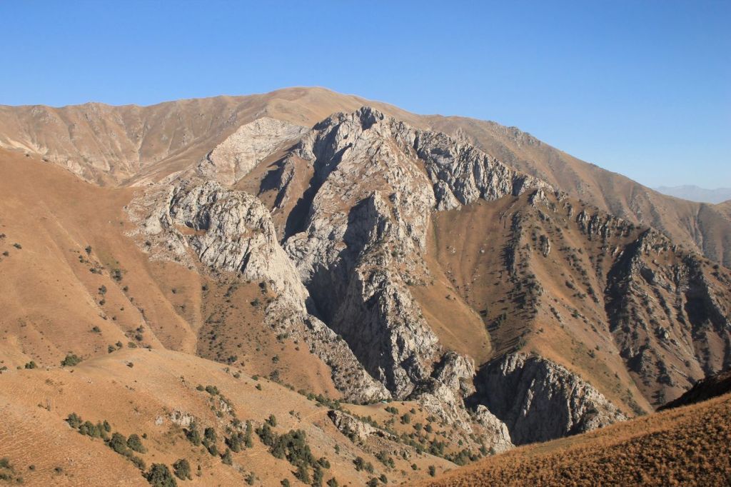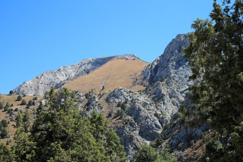 Hot, dust and long way to the peak – it was challenging. Sun burned the grass even in the middle of the summer and mountains have their special ochre color. On the way you can see upper gorges of Kulosya – they are impassable. From the pass before the peak you can see valley of Koksu river and from the peak you can see panorama of Chorbog water reservoir.