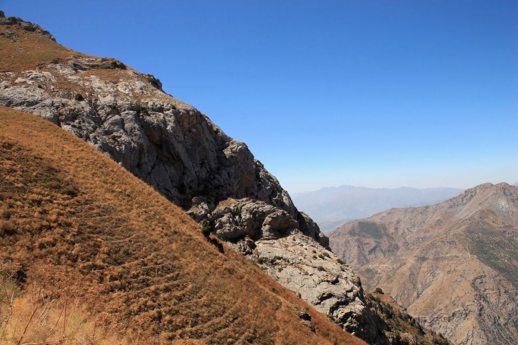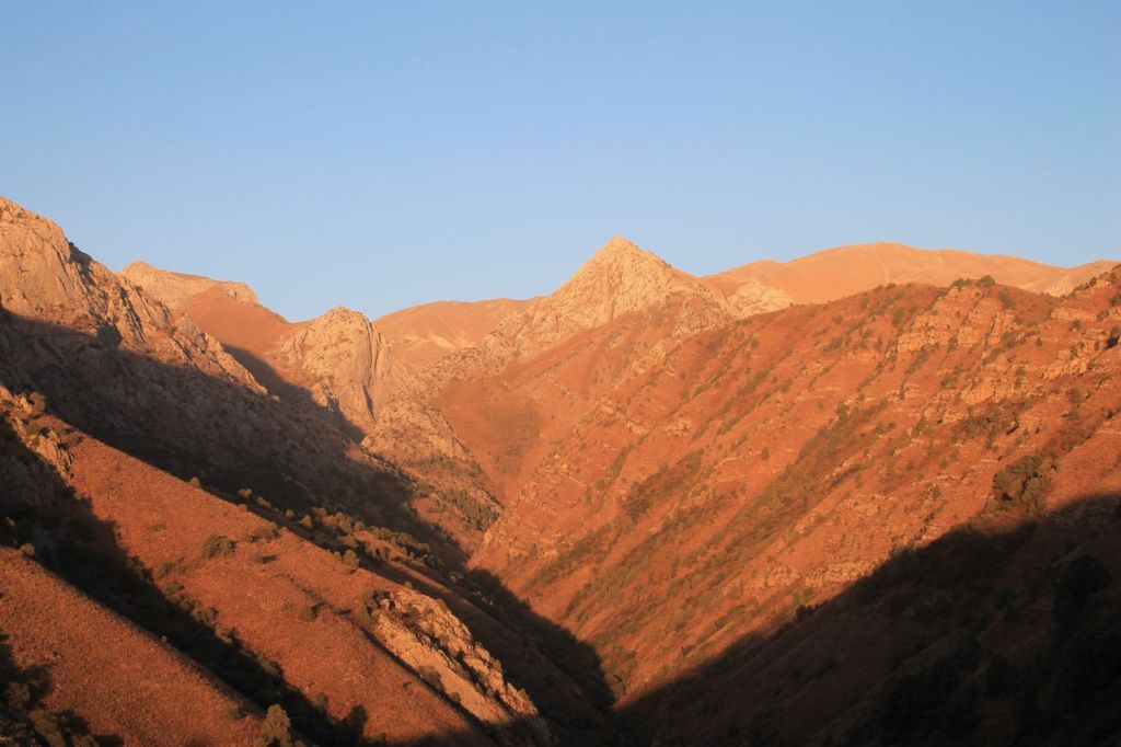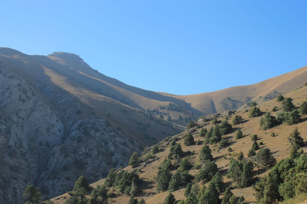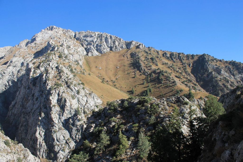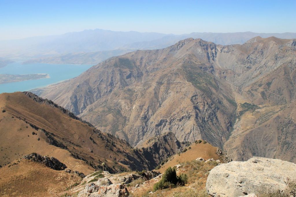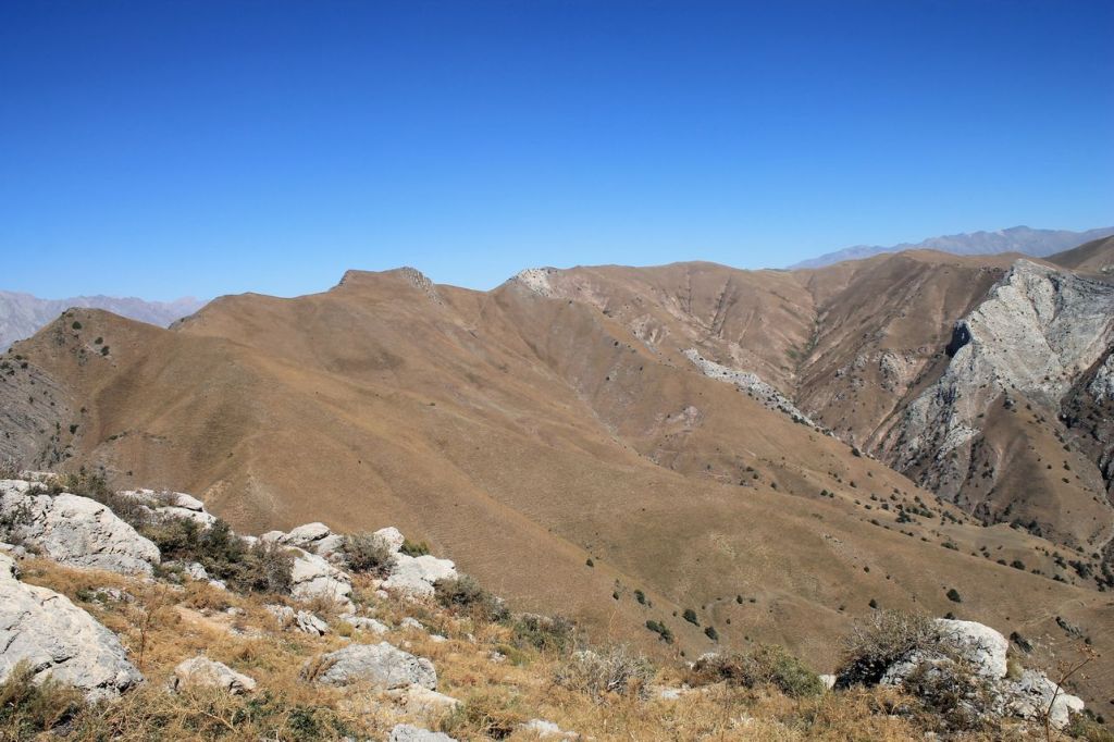 Hot, dust and long way to the peak – it was challenging. Sun burned the grass even in the middle of the summer and mountains have their special ochre color. On the way you can see upper gorges of Kulosya – they are impassable. From the pass before the peak you can see valley of Koksu river and from the peak you can see panorama of Chorbog water reservoir.