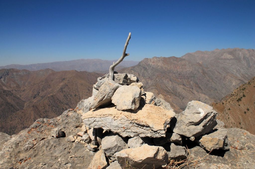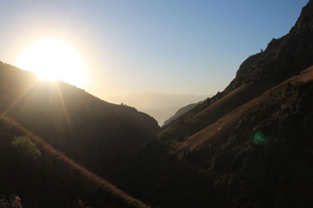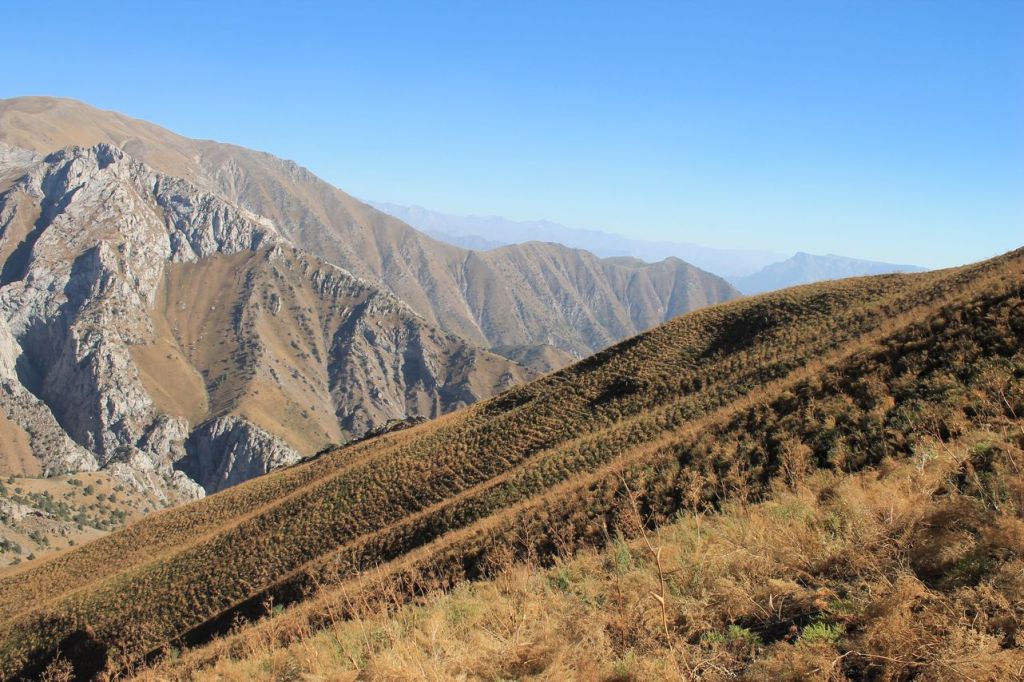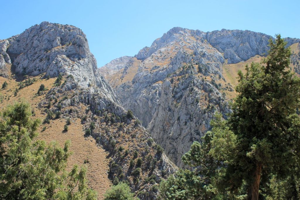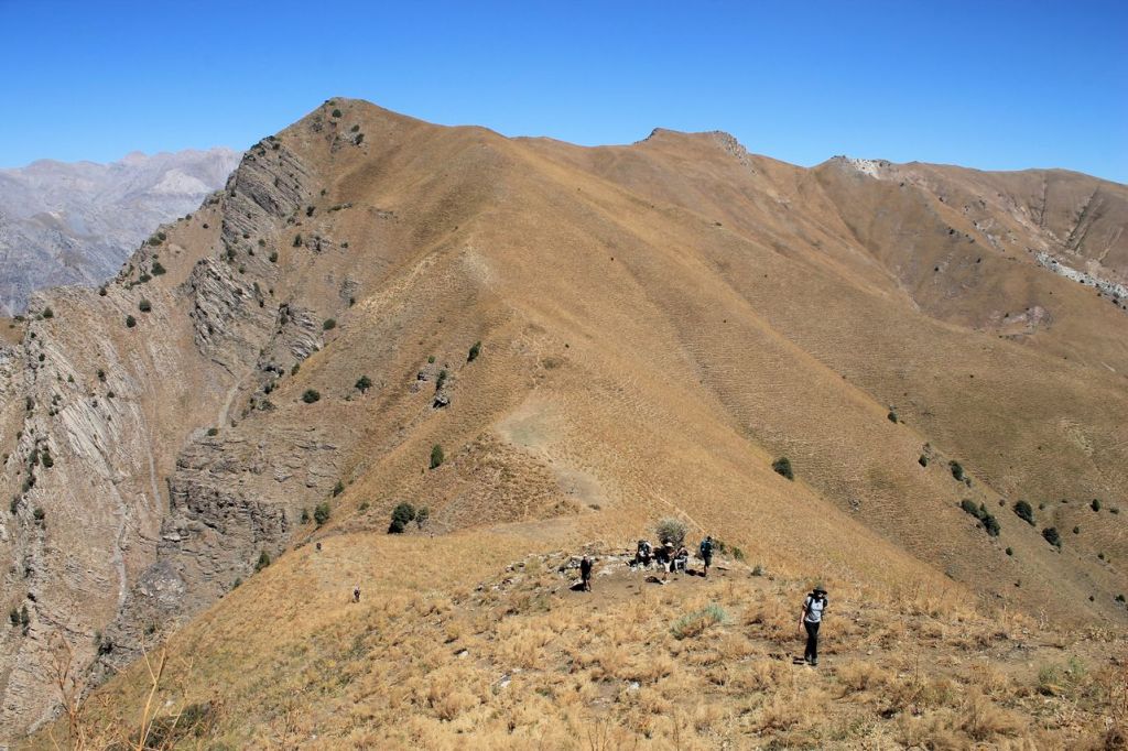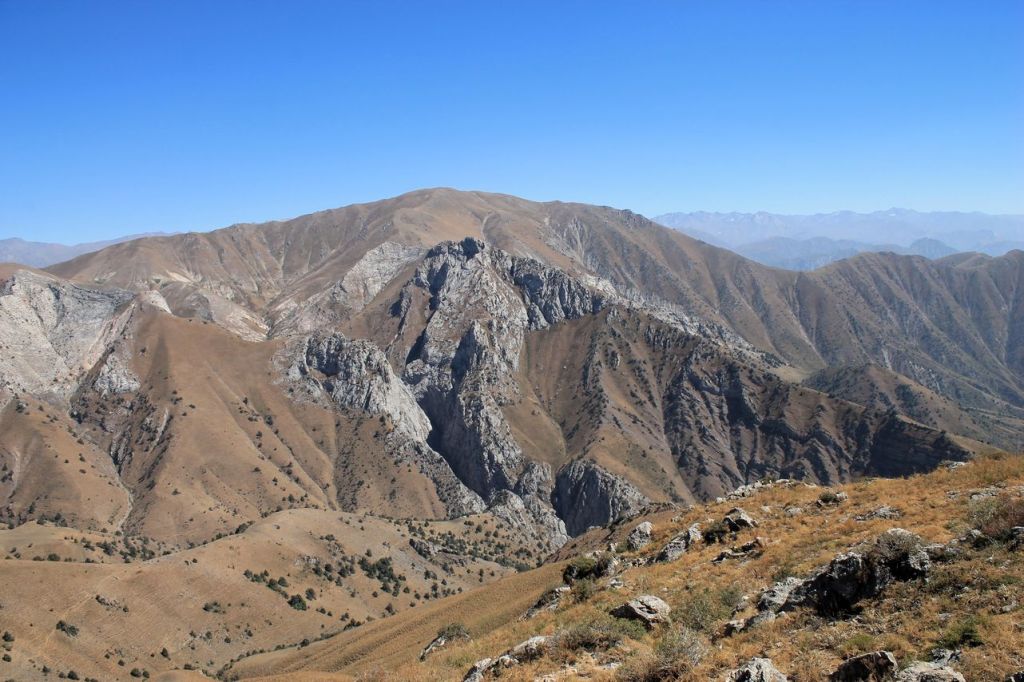 Hot, dust and long way to the peak – it was challenging. Sun burned the grass even in the middle of the summer and mountains have their special ochre color. On the way you can see upper gorges of Kulosya – they are impassable. From the pass before the peak you can see valley of Koksu river and from the peak you can see panorama of Chorbog water reservoir.