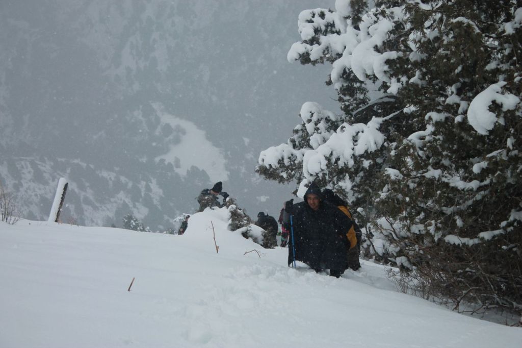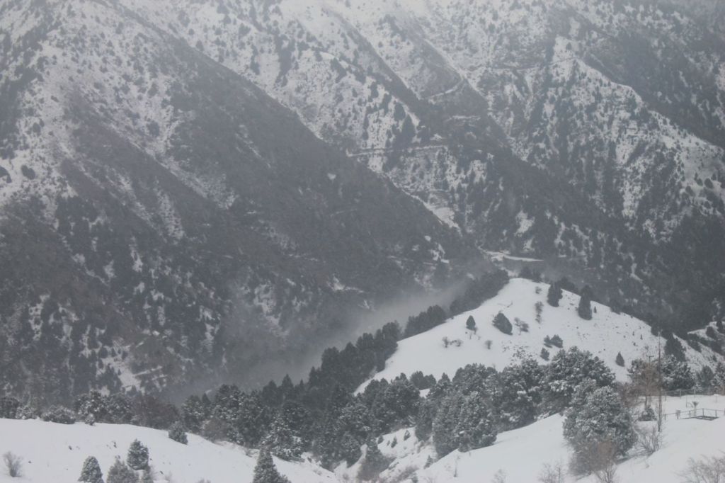 Travel in the Yangiabad mountains again. Medium severity tour in the summer but there is winter in the mountains in November! The beginning was like beautiful winter fairytale – bright sun, blue sky, white show. But in the middle of the way the weather began to change. Sun hid, wind got stronger and snow has begun. We reached the peak but couldn’t stay there more then 10 minutes – only took some photos. Thanks god the temperature wasn’t low because it was real snow storm. Lack of shots – most views were hidden by fog and snow 😦
