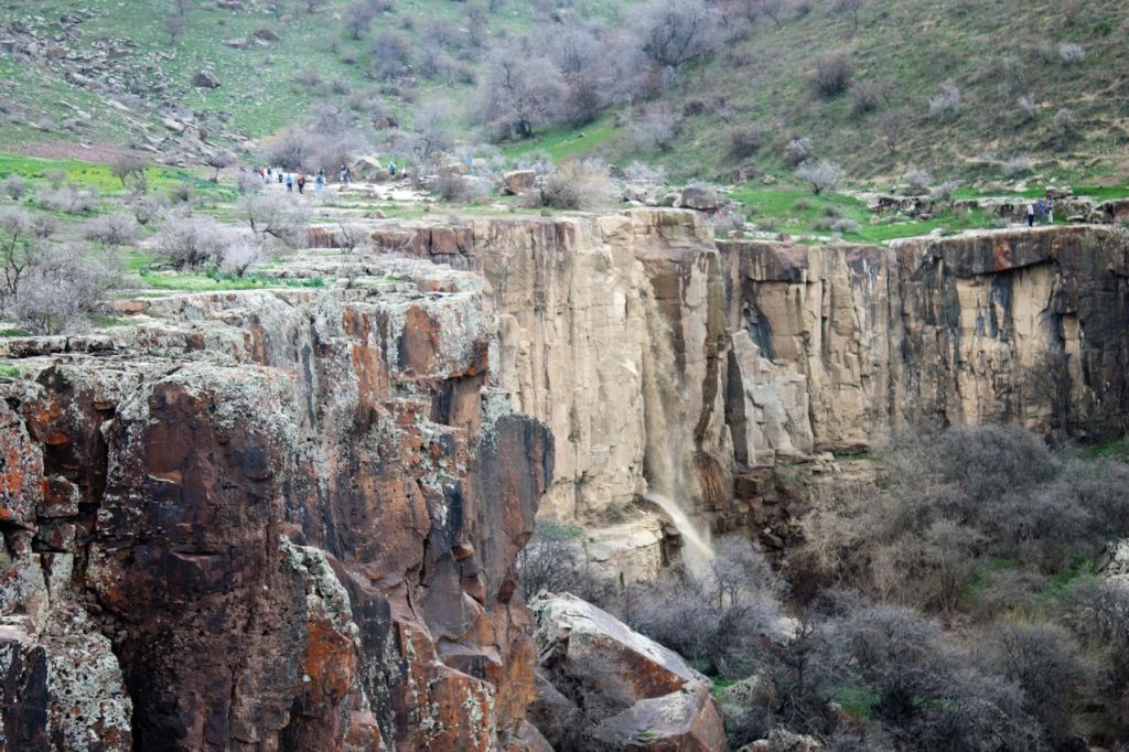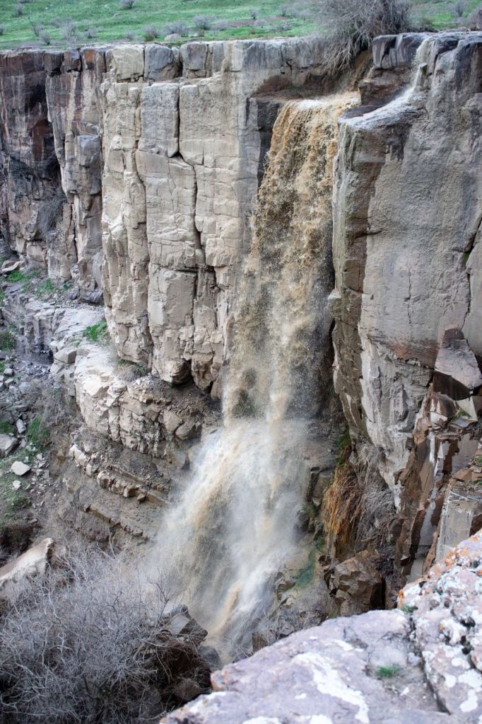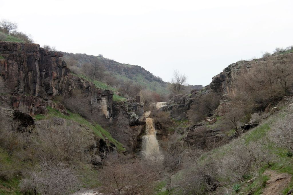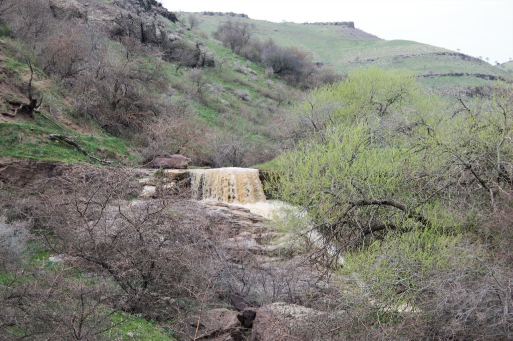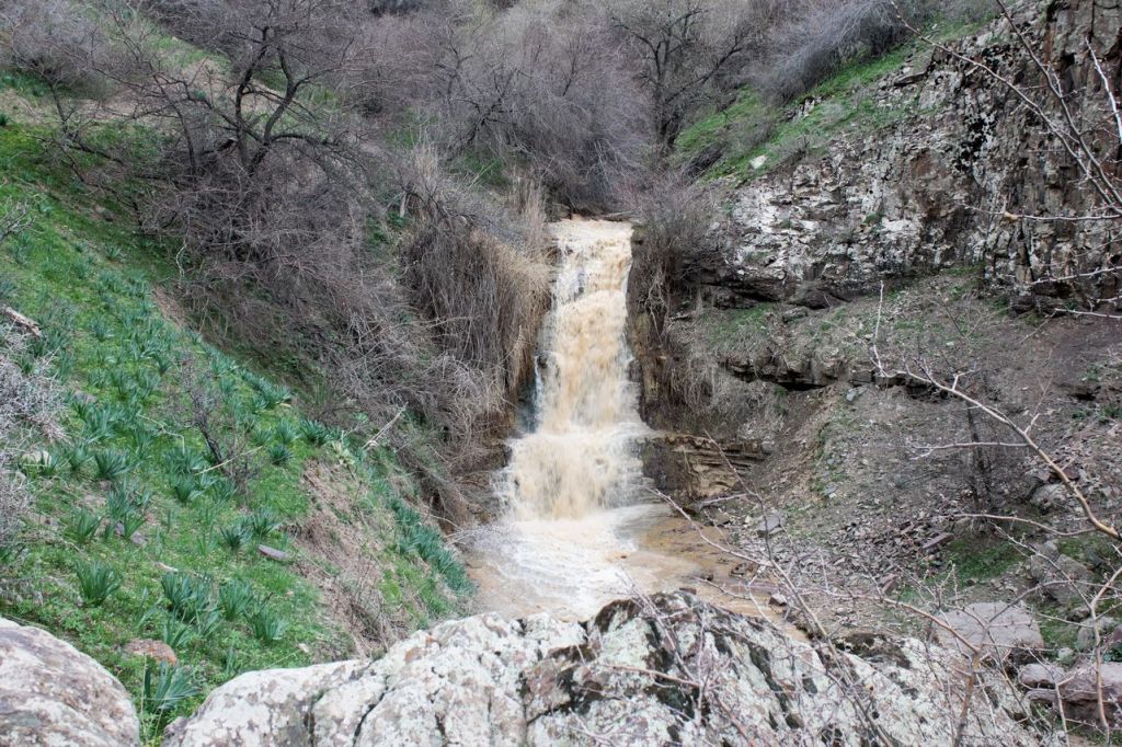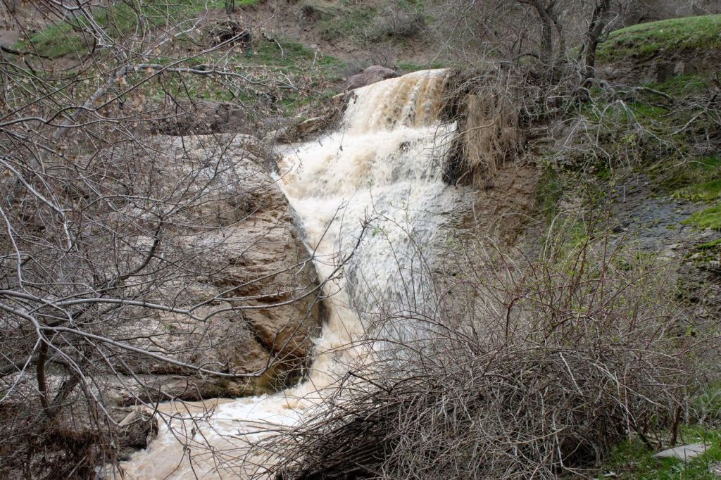 I was here one year ago in May. There was a lot of tulips but now I met only couple. Spring is only beginning. There is a lot of water in the river, and it mixed with the mud – pure milk and coffee. We also climbed the nearest hill. It is a good place to watch the canyon and mountains far away.