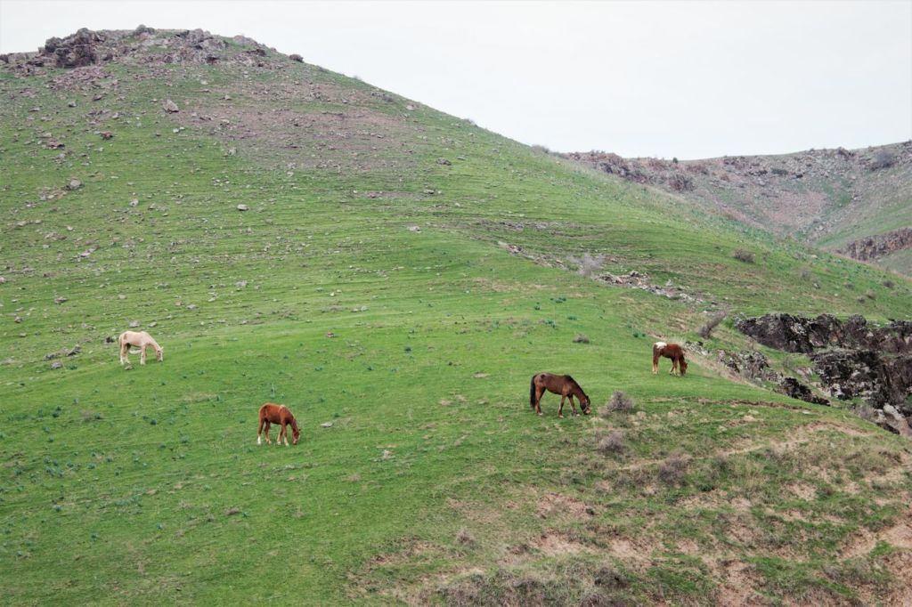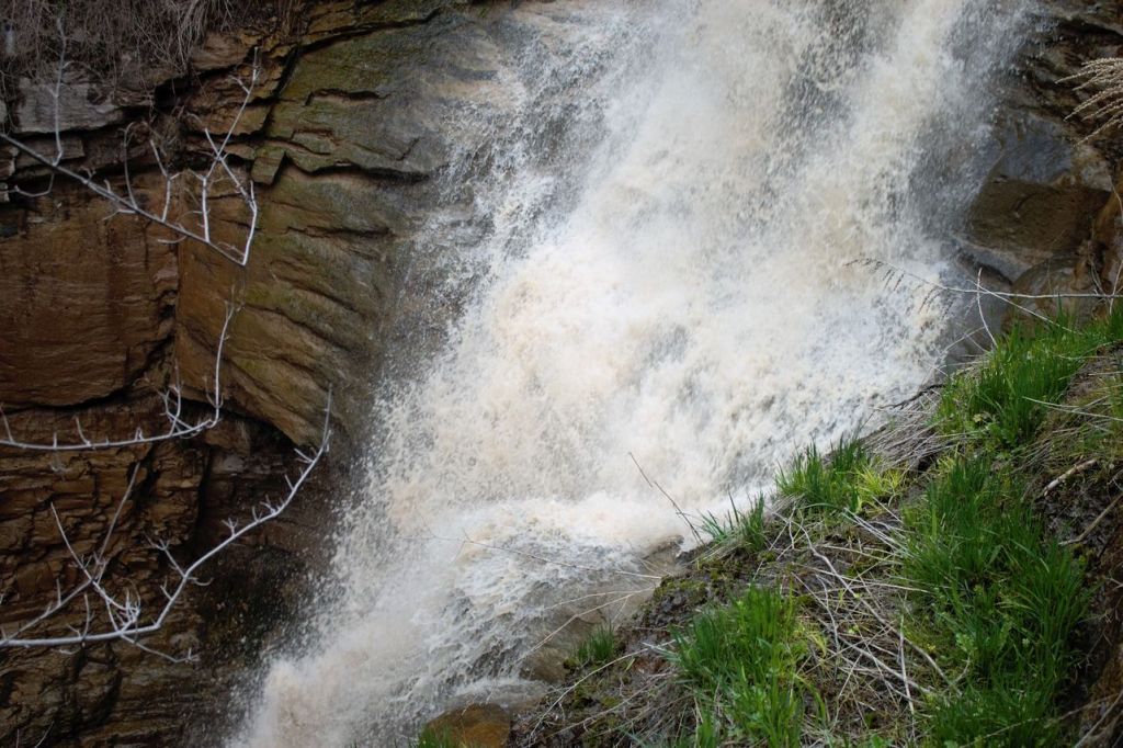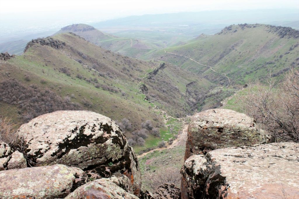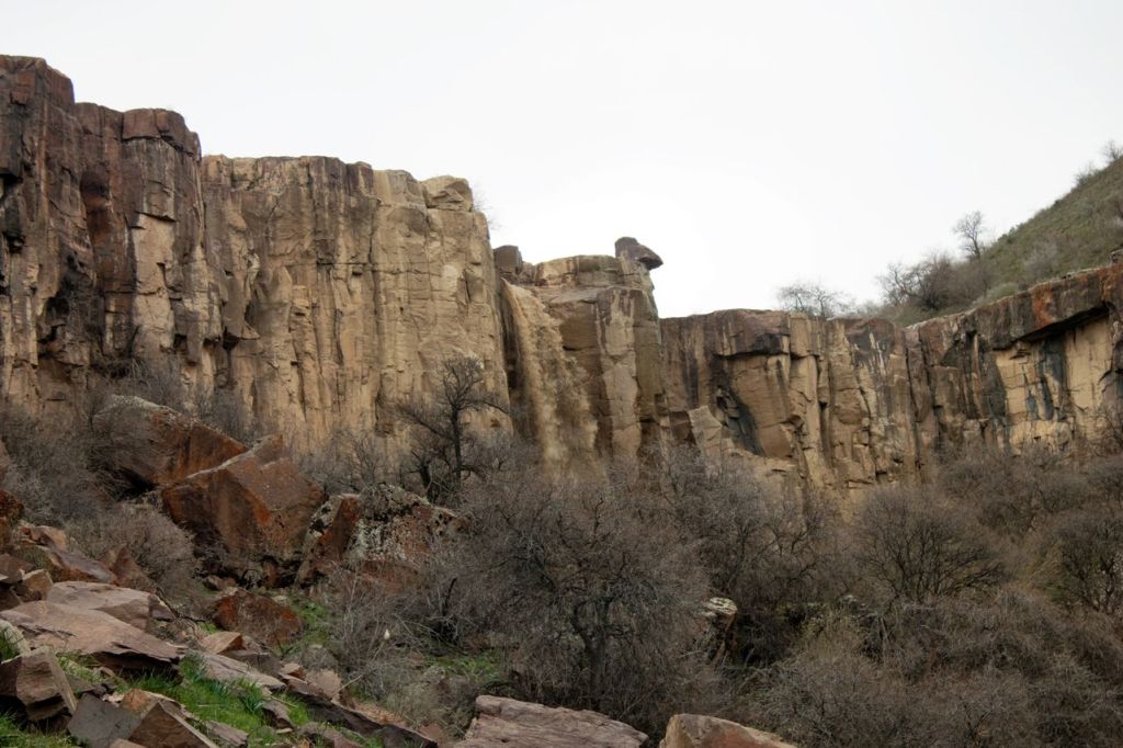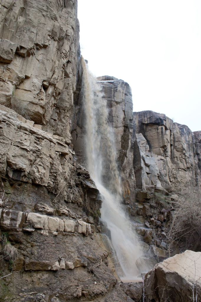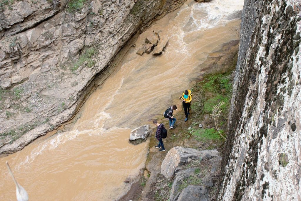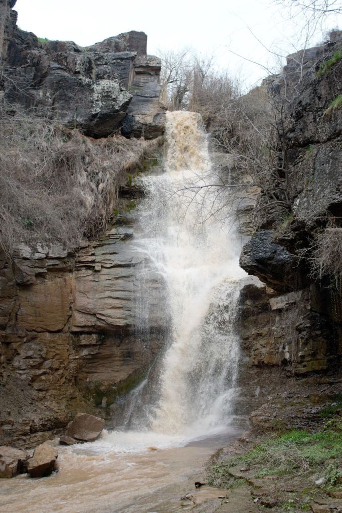 I was here one year ago in May. There was a lot of tulips but now I met only couple. Spring is only beginning. There is a lot of water in the river, and it mixed with the mud – pure milk and coffee. We also climbed the nearest hill. It is a good place to watch the canyon and mountains far away.
