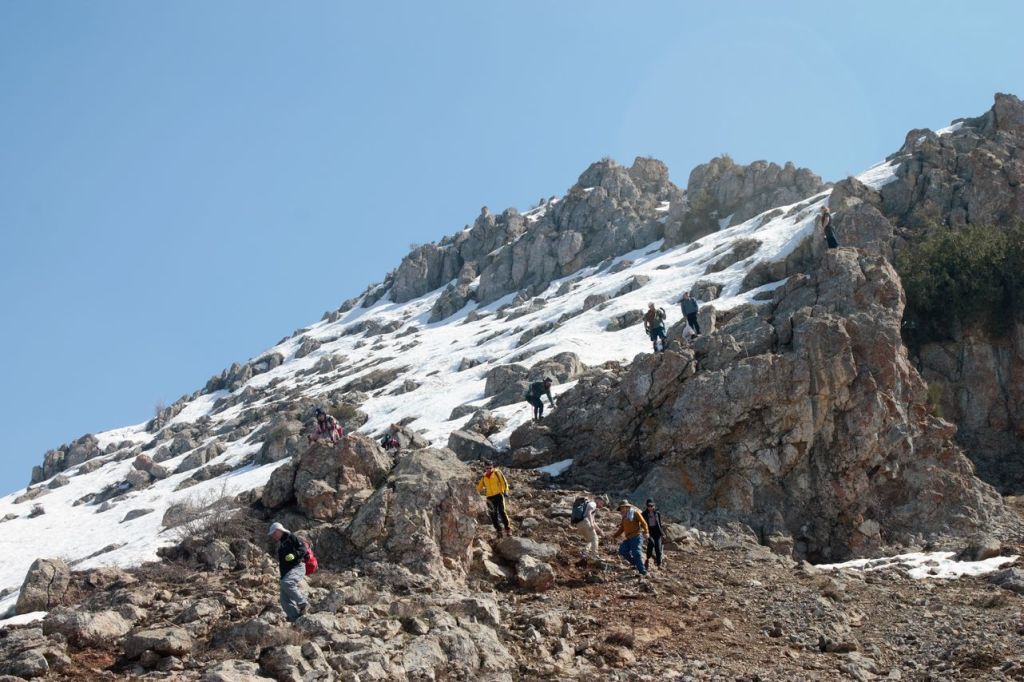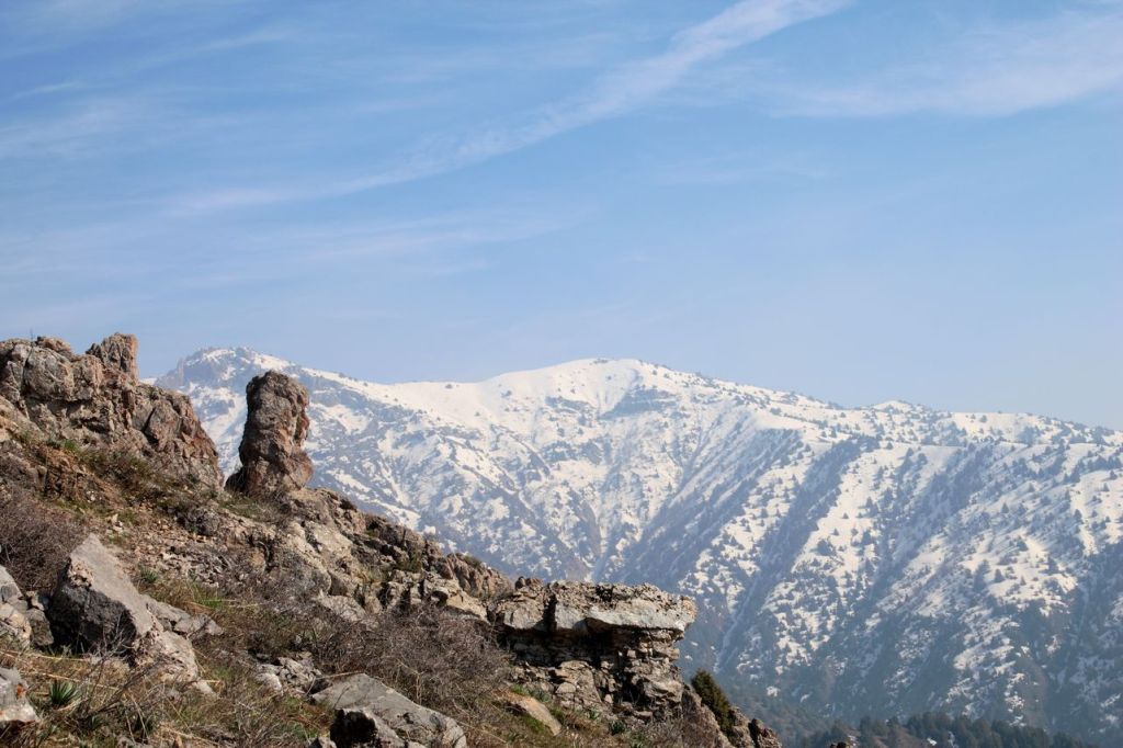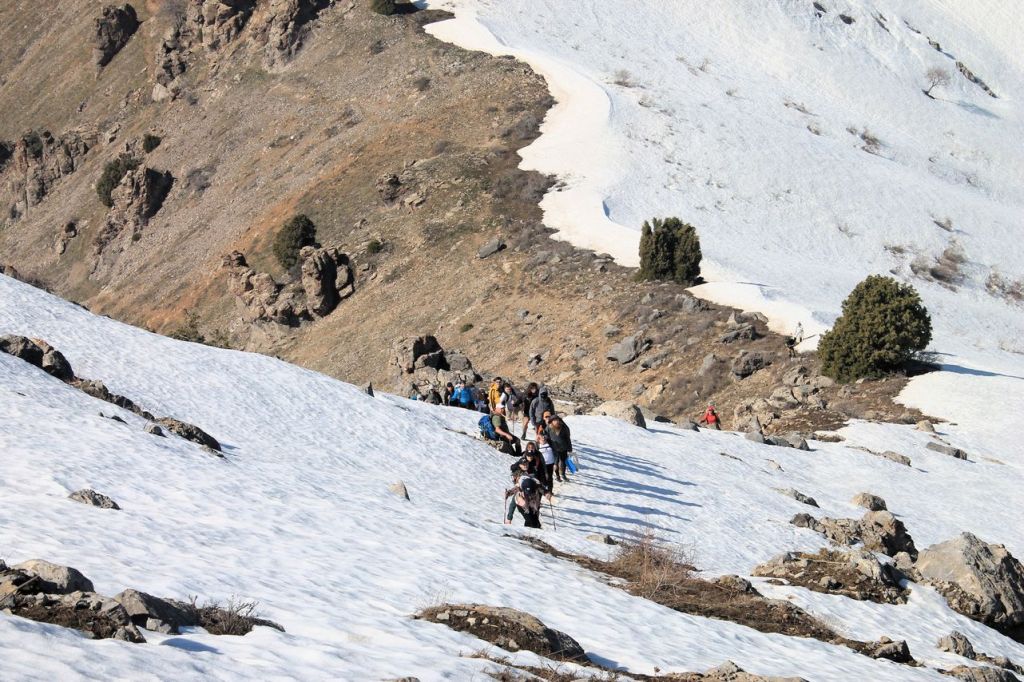 In the beginning of spring mountains still covered by snow. Medium hike on the top of Shakh-Kurgan became a challenge for our group. Most of us couldn’t climb because of the danger. Snow was very slippery and not all tourists have appropriate boots, not to mention about sticks. Some of us could climb and they were rewarded with magnificent views of mountains covered by snow and the Sukok forest.