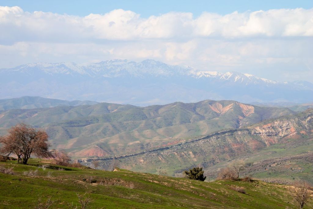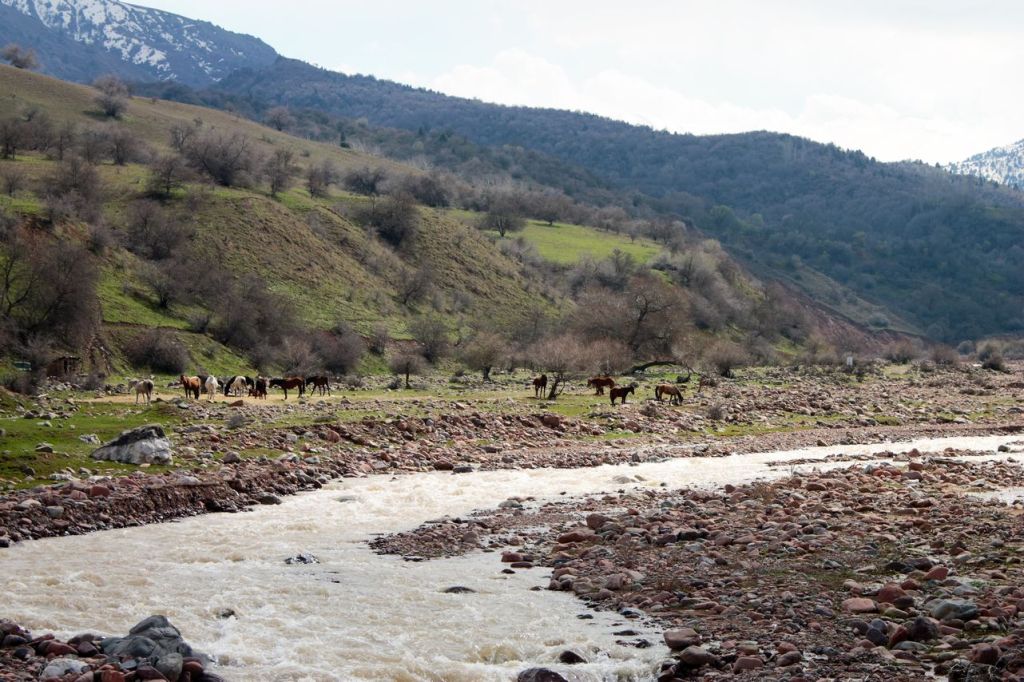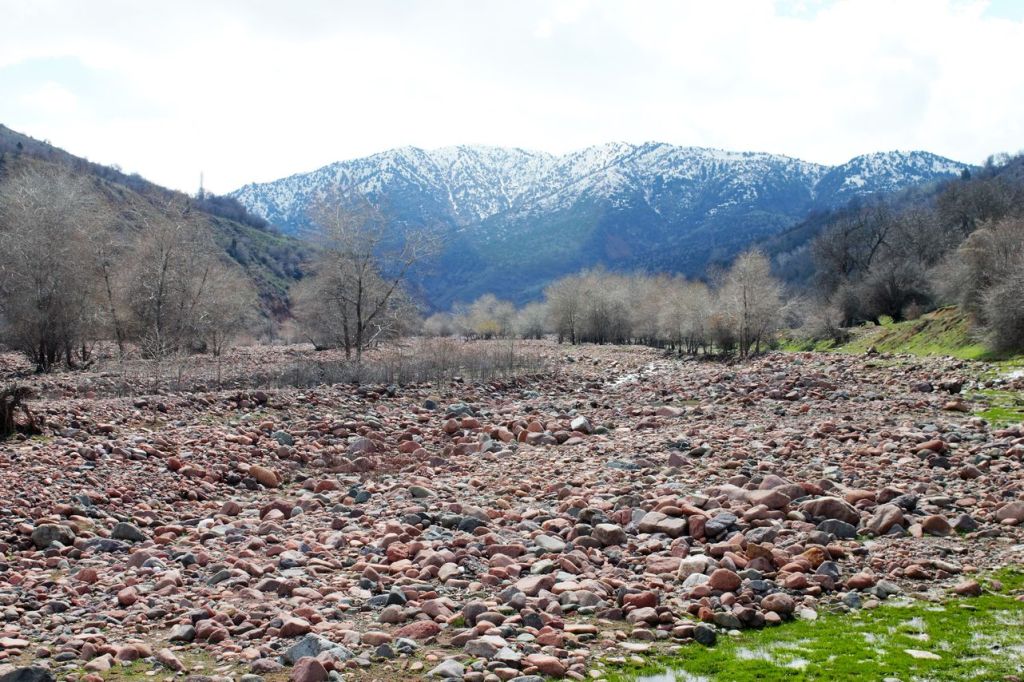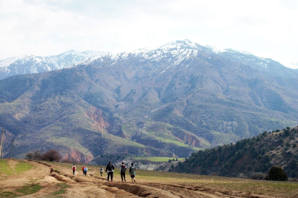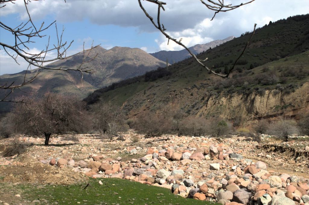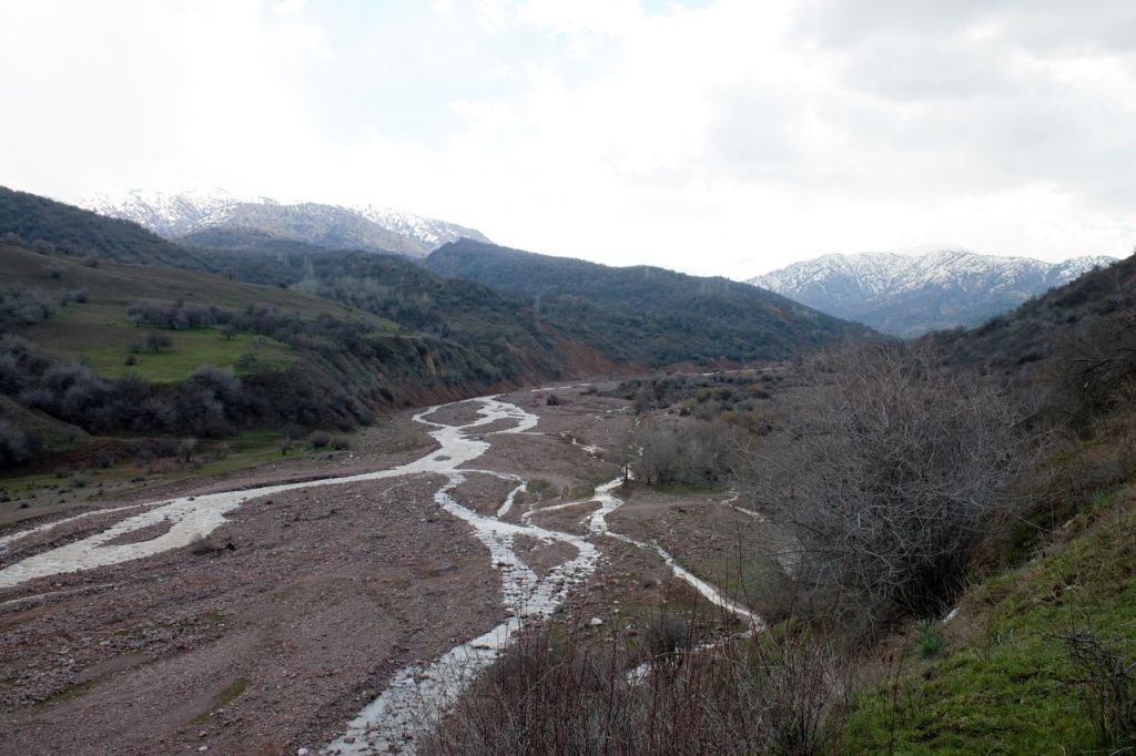 It was interesting hike about 25 km long. It began near Kumishkan village. We went to the confluence of Nurekata and Aksagata rivers and admired of surrounding views. Spring still began. There are no leaves on the trees. Grass is small yet. The water level in the rivers is low. Hills left their snow blankets, but high mountains still covered by snow. Then we climbed up to the hills near Surenata mountain. After that our way laid down along the canyon to Gidjal village. Mountains around Tashkent were an ocean floor in Triassic period and you can find an ancient shell 30 million years old!