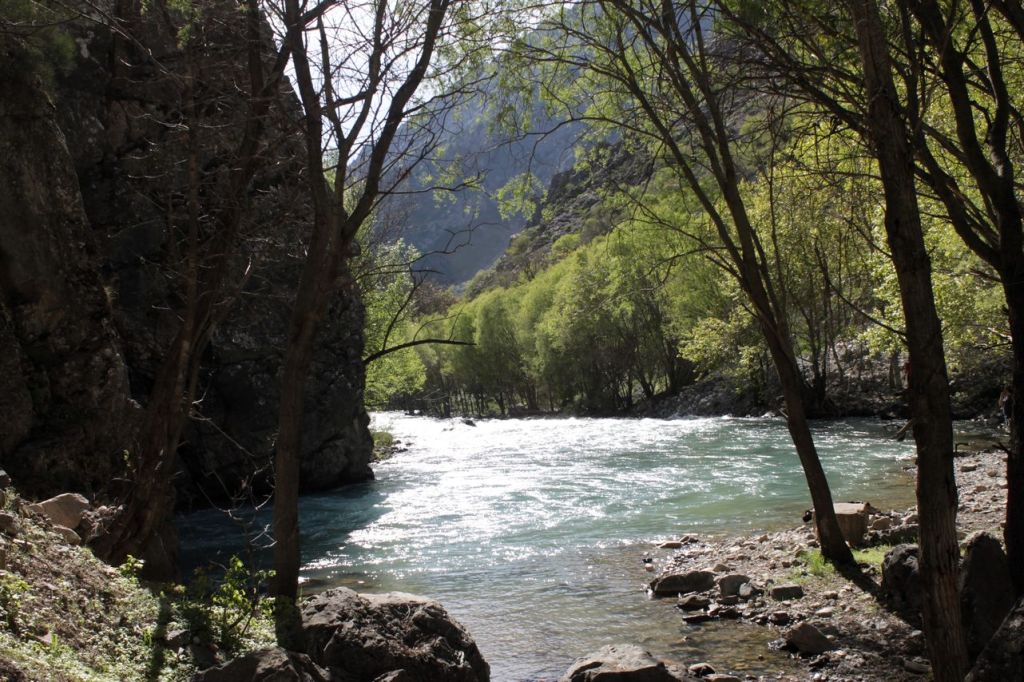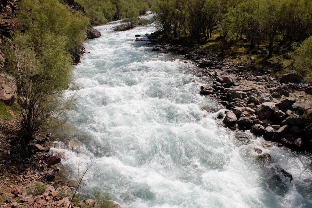 The river is amazing. Sometimes it quiet like slipping baby but in most cases it like galloping mare. Turk languages have one word meaning green and blue colors – it’s Kok. And Koksu shows itself in all palette from green to blue.