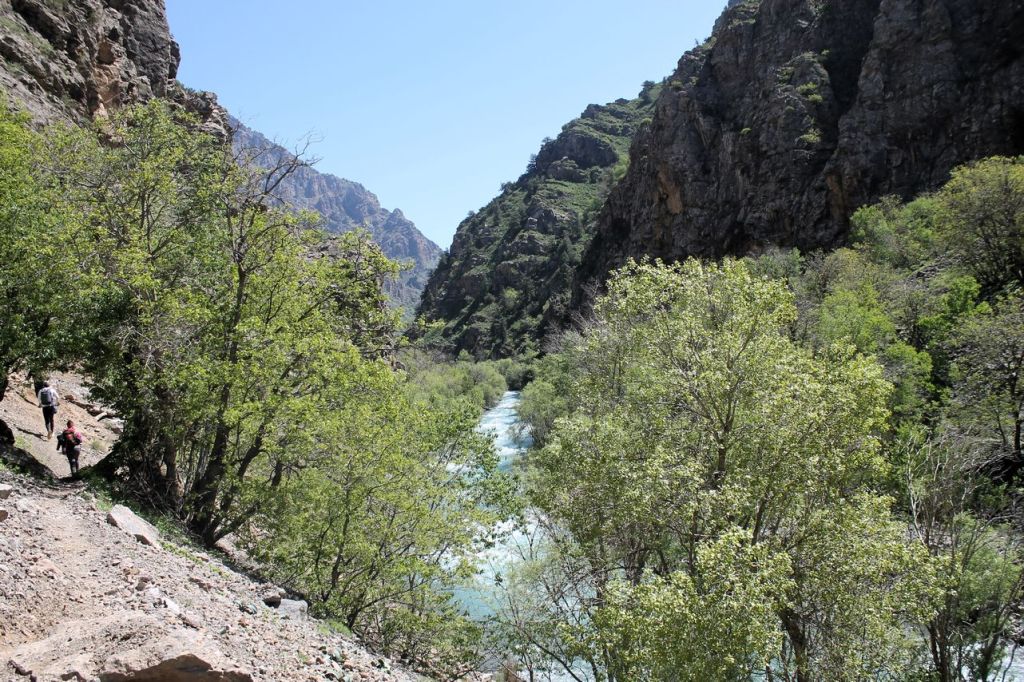 This hike started before dawn and finished not after dusk but in the middle of the night. It was because we overcame about 34 km this day. Our way laid along the rough mountain river Koksu to the place called The Crack. Weather was beautiful – sunny and not too hot. Spring, first leaves.. I have no words to describe)
