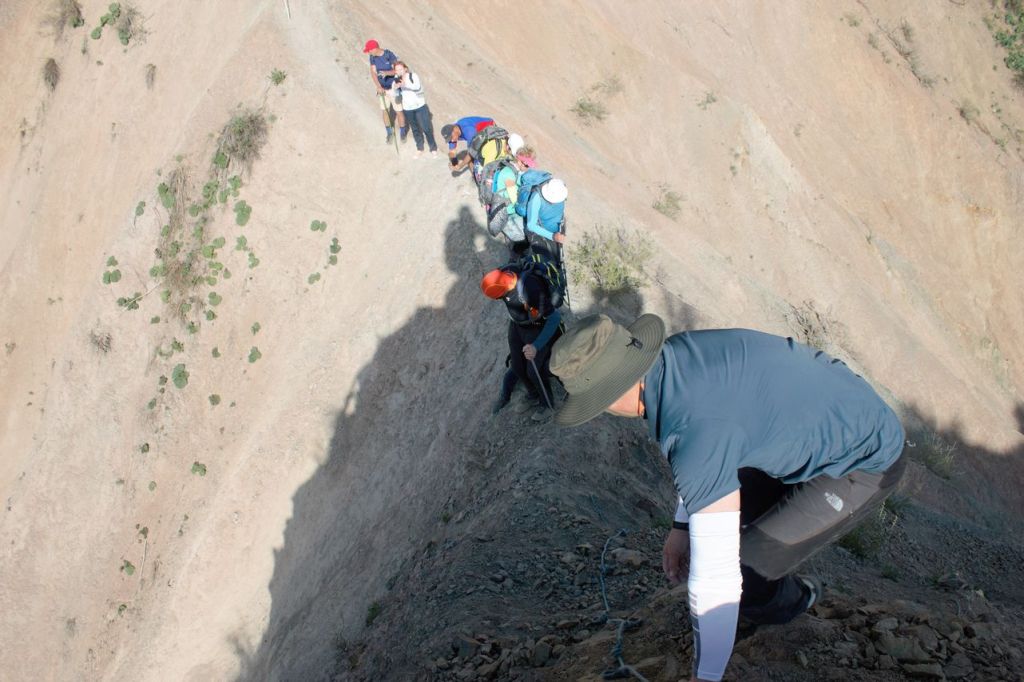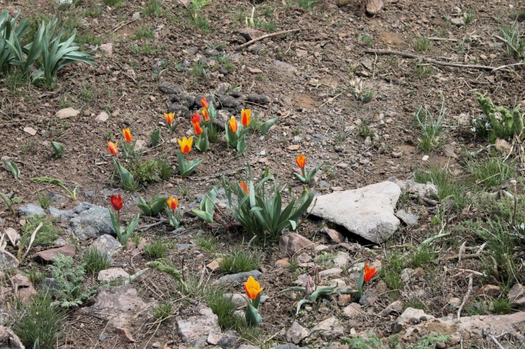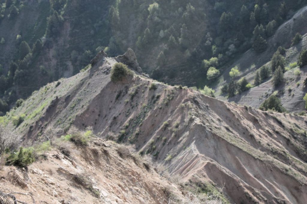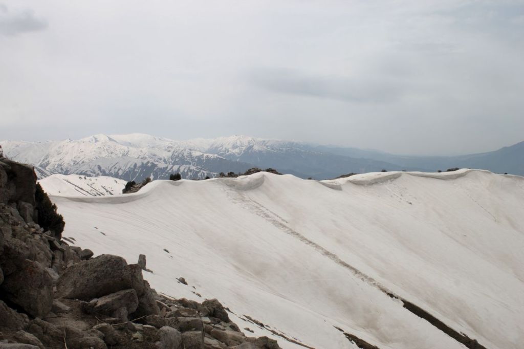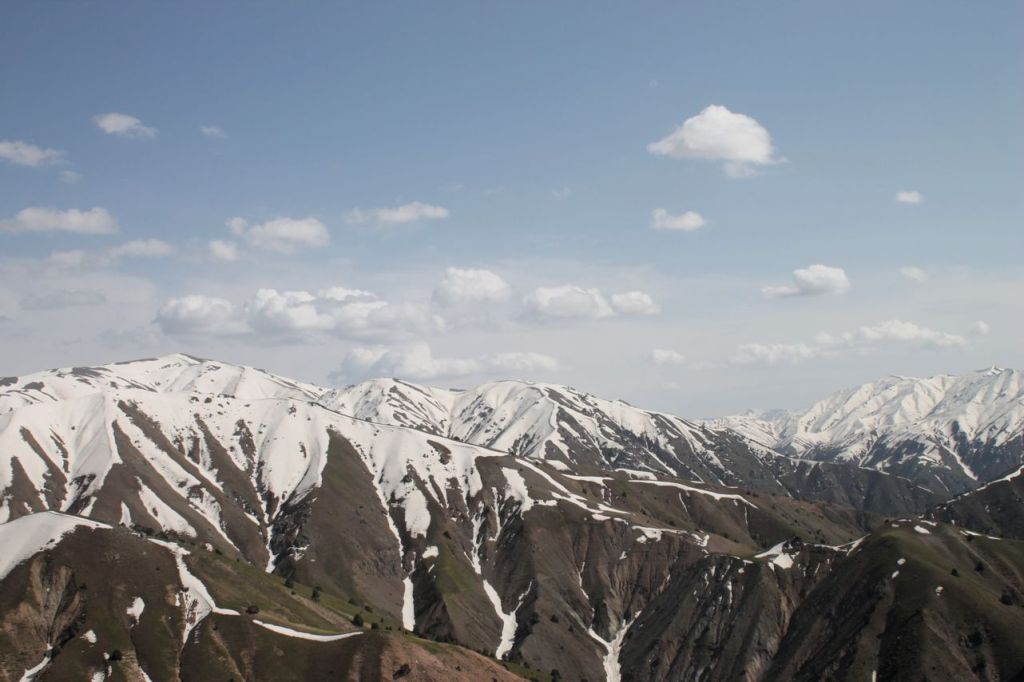 This day starts with the climbing on western ridge of Big Chimgan (~2500m). There is a lot of snow yet on this height but first flowers appeared already. Further our way laid down to the Beldersay river. This path goes through risky pass called “Ochkovy Isthmus”. It is the main goal of this trip – cross narrow steep pass. Most of the people cross it quietly but for some of us it can become insurmountable barrier. How many emotions even tears! But all overcame, bravo!