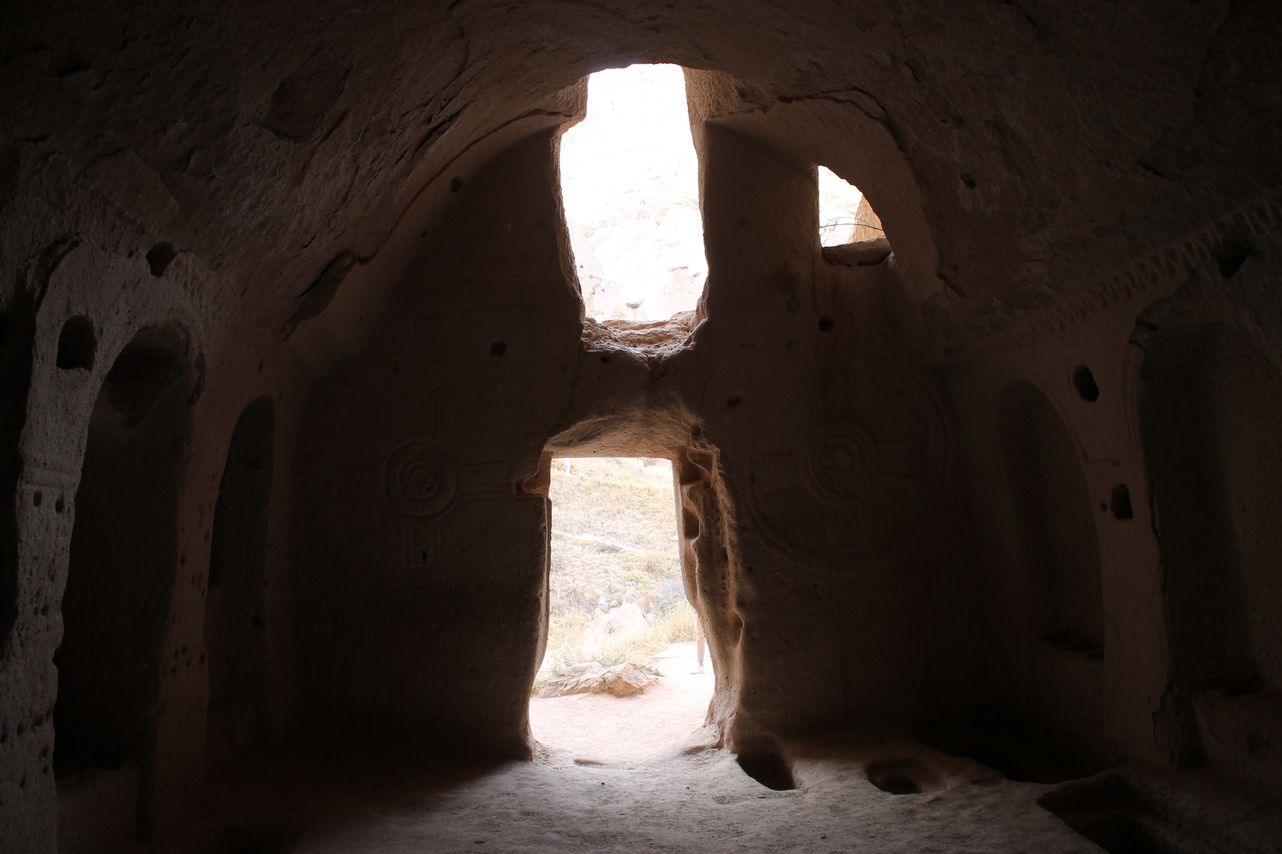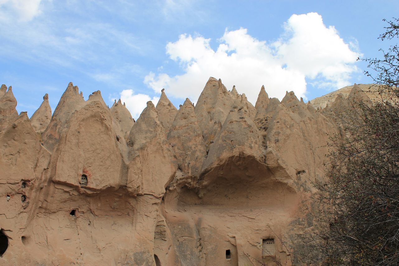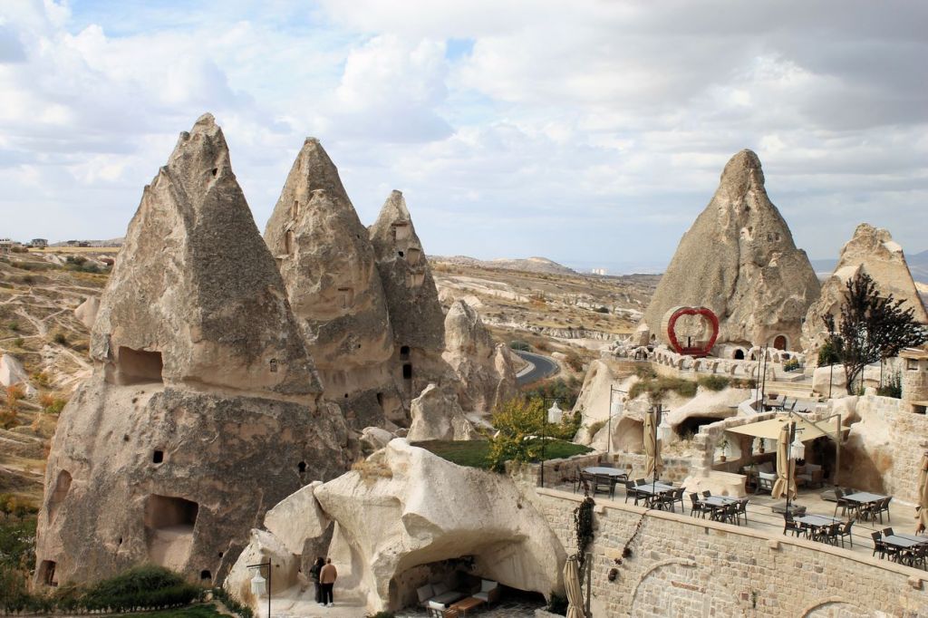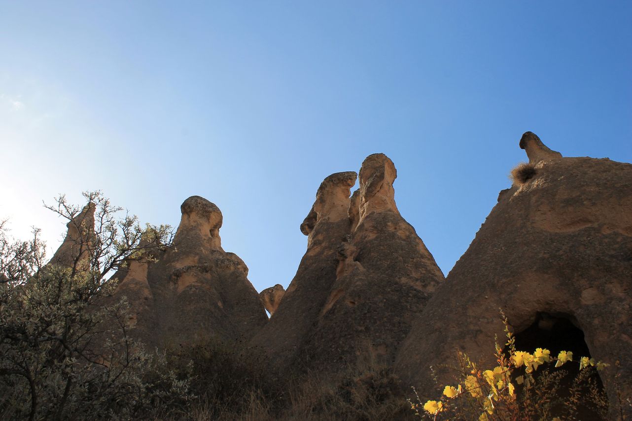 Goreme is a small town surrounded rocks with the caves. Millennia-old houses inside the rocks alternate with modern buildings. There is the Goreme Open-Air Museum near the town with churches carved into the rocks from the early Christian era – “Dark church”, “Snake’s church”, “Buckle church”. After museum we moved to the Uchhisar town to visit a Castle. It’s a kind of a hiking activity to reach a castle on the top of a mountain, but the way lays through the picturesque village. After the Castle we visited Pigeon valley with dwellings and bird cages carved into the rocks. At the end of this day, we visited Love valley. You will recognise this valley at first glance. 😜