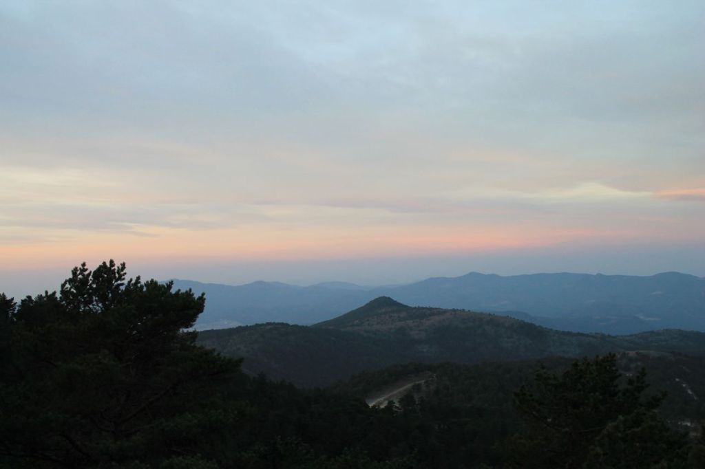 It was two-day activity with a small team from Idadik.org. We started from Izmir at Friday night and reached thermal resort at the foot of the Murat mountain before the dawn. After a brief preparation, we switched on our headlamps and set off for the mountain. We climbed most of the steep, forest-covered slope in the dark, and by dawn we had reached a gentler, treeless slope. A strong, biting wind blew throughout our ascent. At first, the trees in the forest protected us from the wind, but on the pass we were exposed to its full force. We had to put on three layers of clothing and be careful not to get blown off the road. Because of the strong wind, we did not linger at the top, just took some photos and videos, and headed back. When we reached the forest area, it became quite comfortable. We could take off our extra clothes. It got warm, and we descended to the resort without incident. Next, we checked into our bungalows, enjoyed the thermal pool, and in the evening, the guys grilled some kebabs. We had a wonderful time dining outdoors. At this day we made about 22km and reached an altitude of 1,133 meters. Wikilock