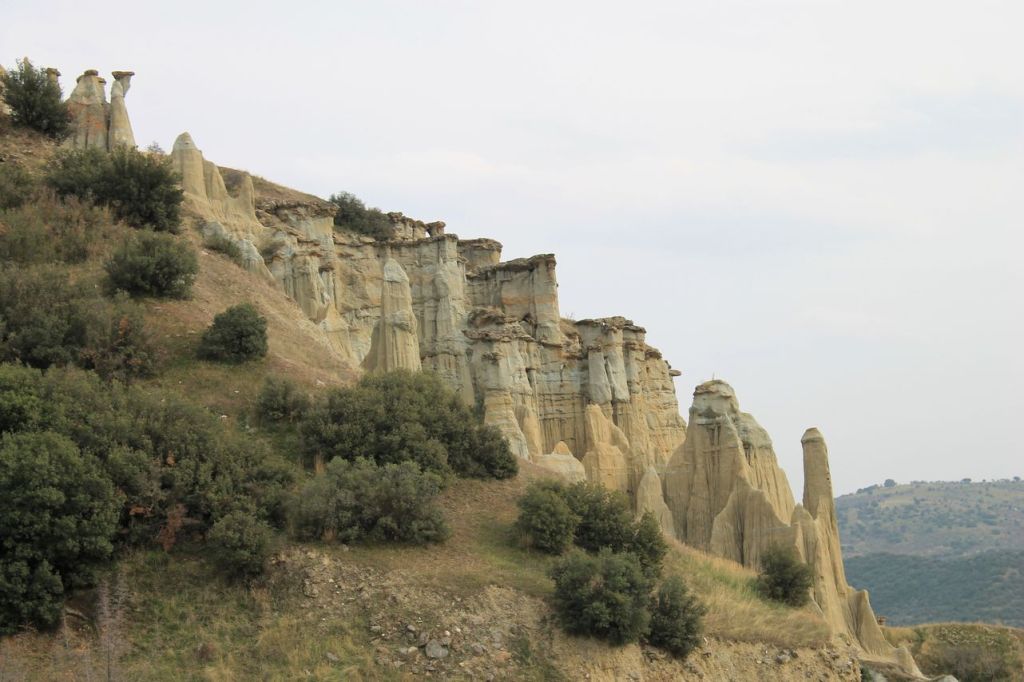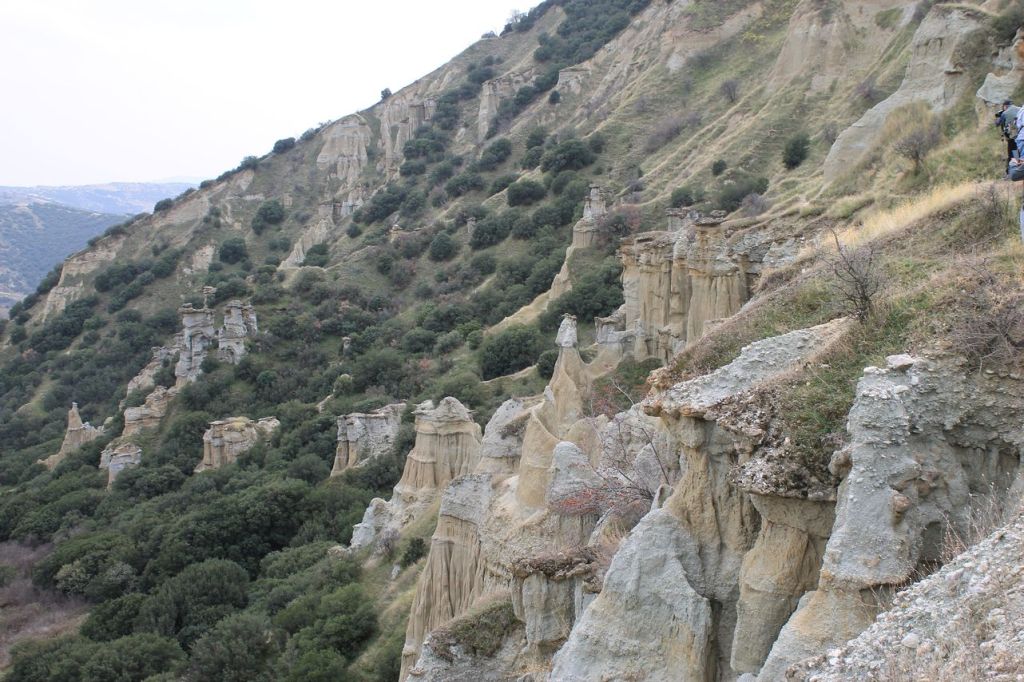 The next day, we had an extensive programme ahead of us. First, we drove to a waterfall about twenty kilometres from the thermal resort. Then we headed to the Kula Geopark on the road to Izmir. The geopark features amazing rock formations formed by magma flows from nearby volcanoes and shaped by wind and water. The landscapes in the geopark are similar to the world-famous rocks of Cappadocia, albeit on a smaller scale, but no less impressive. Then, after a delicious lunch, we went to see one of the ancient extinct volcanoes. We climbed to the top of the crater and walked around it. We had enough impressions for a week ahead!