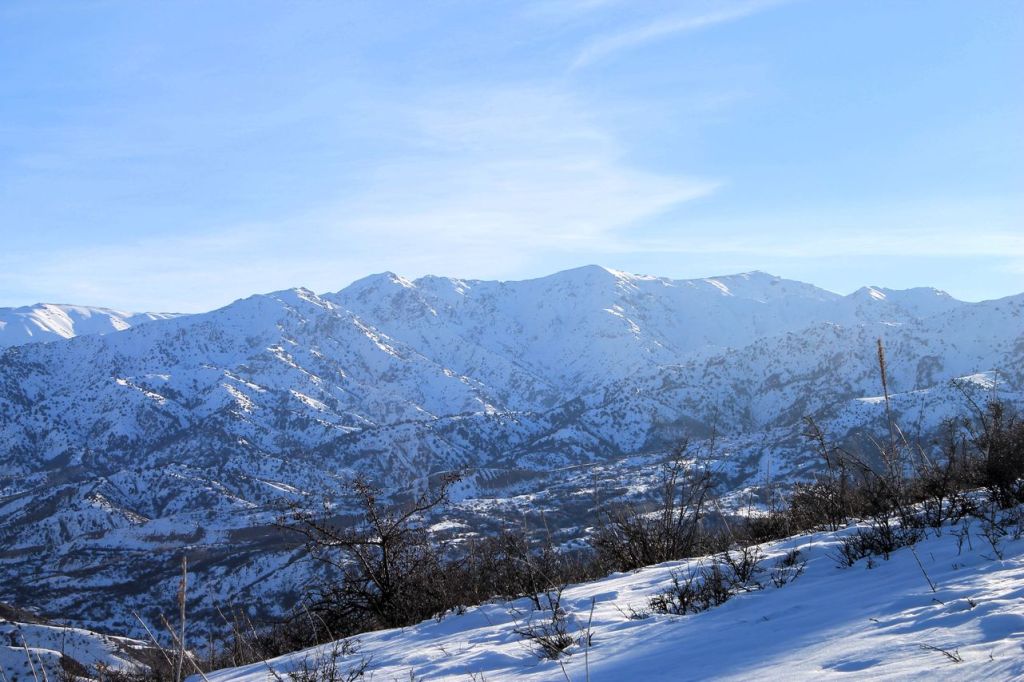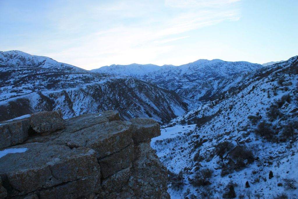 Travel in the Yangiabad mountains again. Medium severity tour in the summer but there is winter in the mountains in November! The beginning was like beautiful winter fairytale – bright sun, blue sky, white show. But in the middle of the way the weather began to change. Sun hid, wind got stronger and snow has begun. We reached the peak but couldn’t stay there more then 10 minutes – only took some photos. Thanks god the temperature wasn’t low because it was real snow storm. Lack of shots – most views were hidden by fog and snow 😦